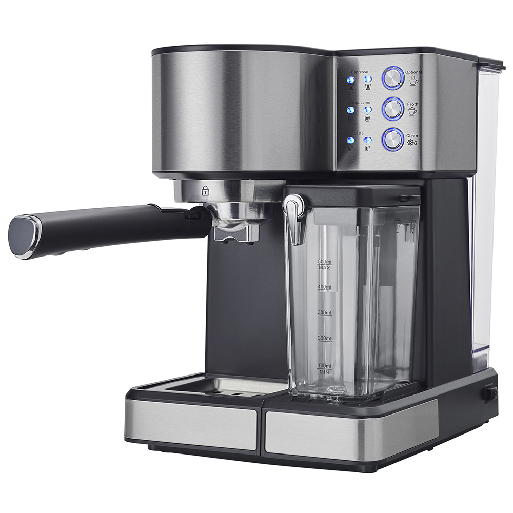 Рожковая кофеварка оснащена вместительным резервуаром для воды объёмом 1,5 л и отдельным блоком для молока на 0,5 л. Устройство универсально в использовании: оно работает как с молотым кофе, так и с чалдами. Управление кофеваркой не вызовет затруднений — простая кнопочная панель позволяет легко задать нужный объём напитка. Для дополнительного контроля качества приготовления предусмотрен аналоговый термометр, с помощью которого удобно отслеживать температуру. Дополнительно кофеварка оснащена функцией подогрева чашек. В комплект поставки входят аксессуары: мерная ложка для точного дозирования кофе и темпер для равномерного уплотнения кофейной таблетки.
